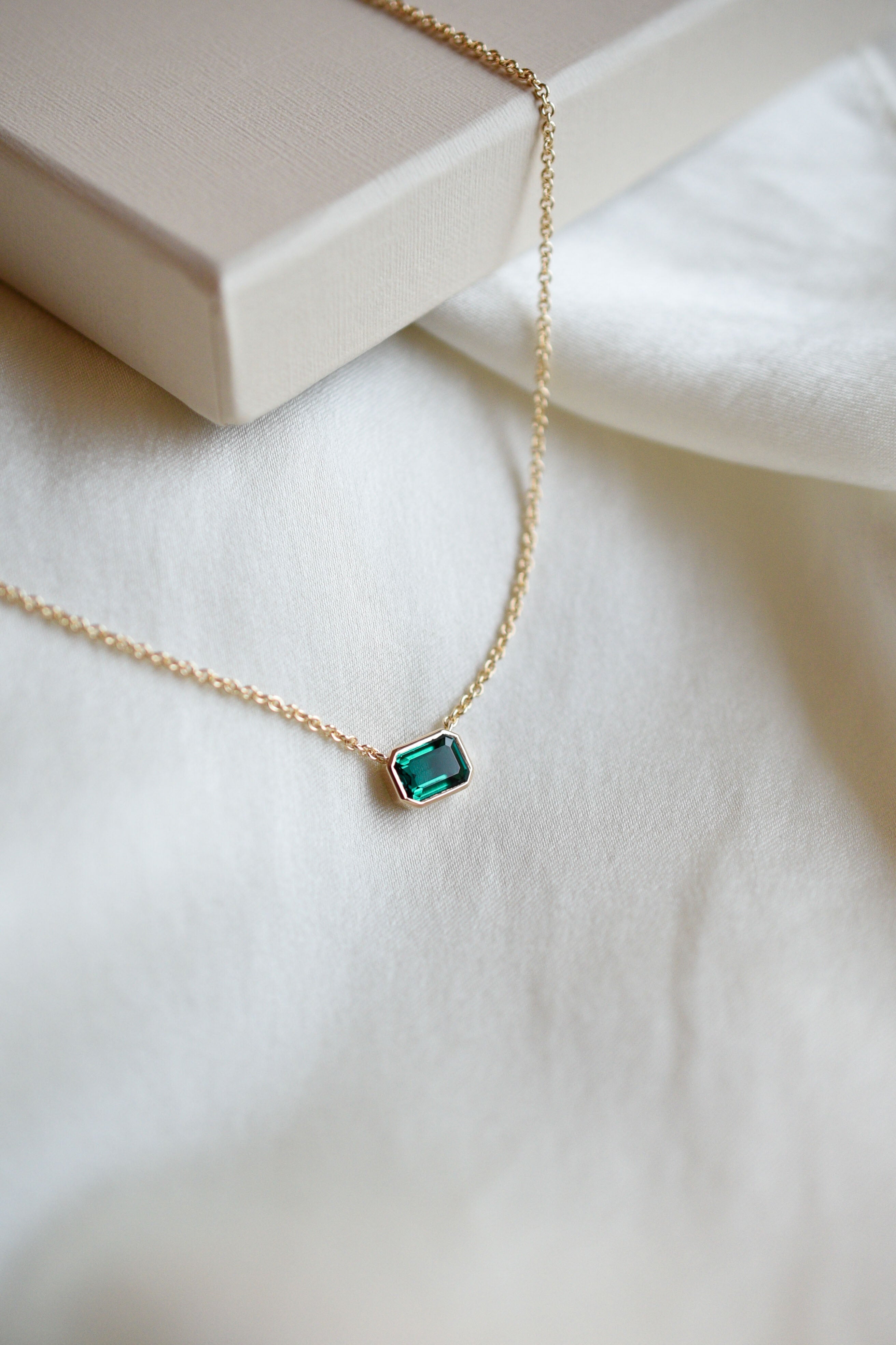 The Emerald Necklace exudes timeless elegance and refined simplicity. A 1-carat emerald in a handcrafted gold bezel setting radiates deep green harmony - a graceful piece for every occasion.