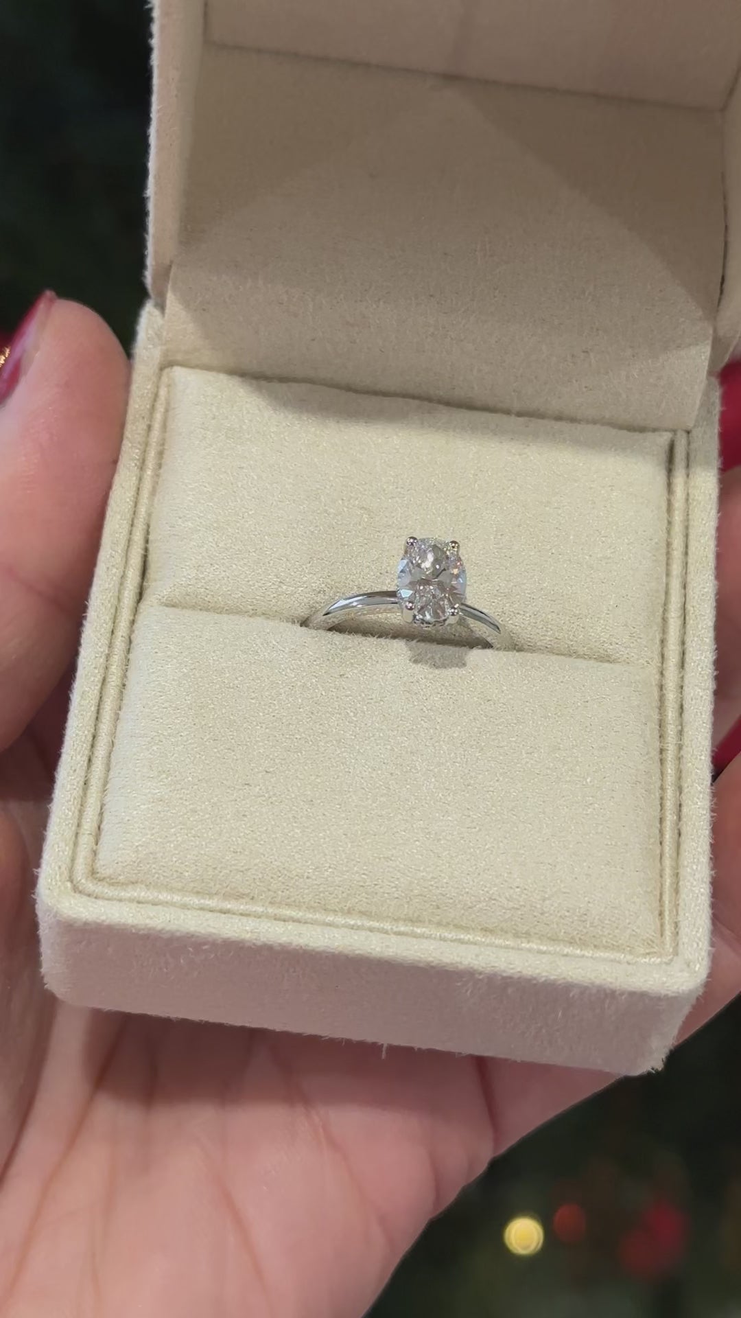 Elegance will be redefined with our Platinum Oval Diamond Solitaire Ring. Crafted with a stunning laboratory grown oval diamond, this ring is a testament to timeless beauty. Its sleek, polished band enhances the diamond's natural brilliance. Whether you're marking a special occasion or making a heartfelt proposal, this ring is designed to charm. You can add a hidden halo to your ring if you wish. Our hidden halo gently accentuates the central diamond.